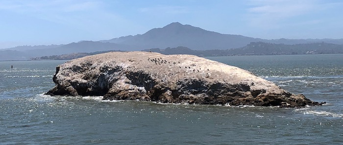 Sea lions sunning on West Brother Island. Mt. Tamalpais in the background.